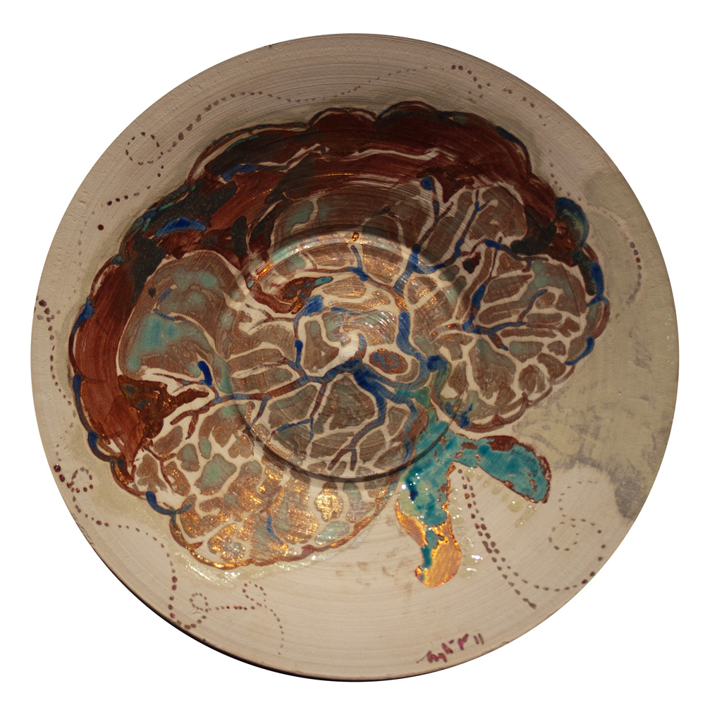 Kathy Earthmann was inspired by the use of iron mesh material as well as industrial waste at Art Ichol. She says, “I was inspired to use textures in my work and tried to duplicate these in ceramic. It was challenging as well as fulfilling working in unfamiliar surroundings.”