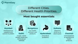 Hyderabad emerged as a gut-health hub, with antacids, and probiotics topping purchase charts.
