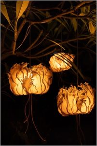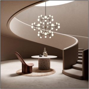 Inspired by natural coconut flowers, this pendant lamp blends warm, earthy tones with handcrafted banana paper shades and a rich pinewood teak finish. Its soft, layered glow creates a comforting ambiance, making it perfect for cozy winter interiors. Whether in residential or corporate spaces, this distinctive chandelier adds both character and a natural warmth that enhances any festive or intimate setting.
