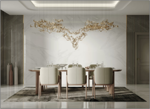 Each glass leaf in the Contour collection comes to life through the interplay of light and shadow, casting delicate reflections that enhance its silhouette. The gilded edge catches the light, adding a soft glow that highlights its organic form. When clustered together, these pieces create a breathtaking composition.